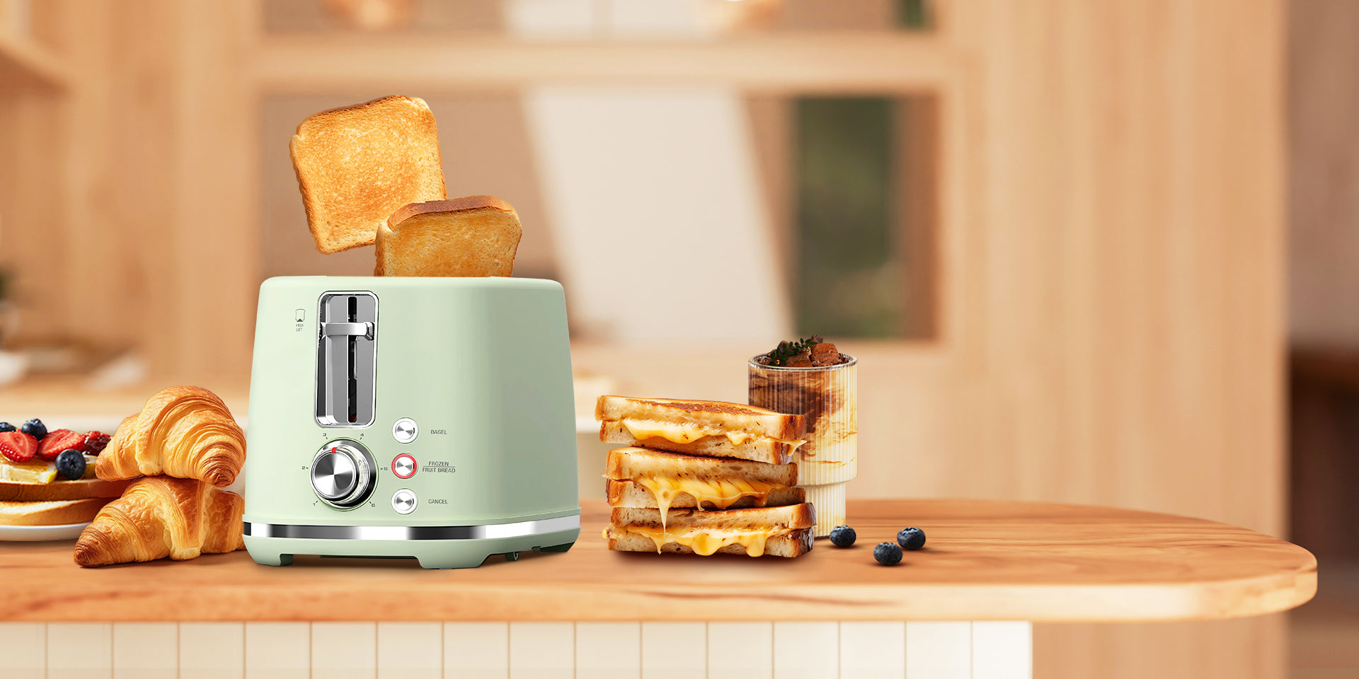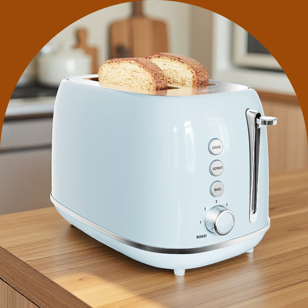 Retro 2 Slice Toaster with Wide Slots and Removable Crumb Tray