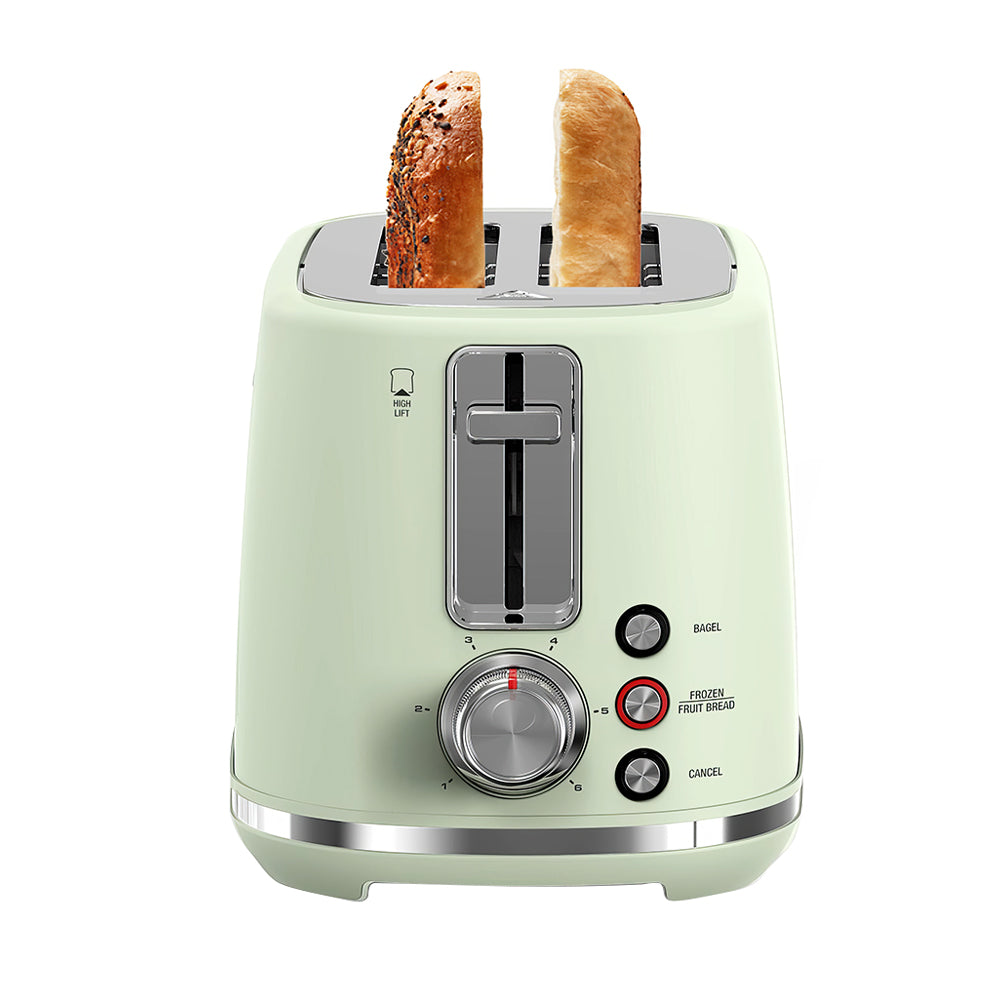 Toast bread, bagels, waffles, and more with this practical 2-slice toaster. Designed with 1.5-inch wide slots, it fits various slice sizes. It offers 6 browning levels, a high-lift lever for easy toast removal, and safety features such as auto shut-off and frozen mode. The removable crumb tray makes cleanup simple. Its compact stainless steel design fits well on most kitchen counters.